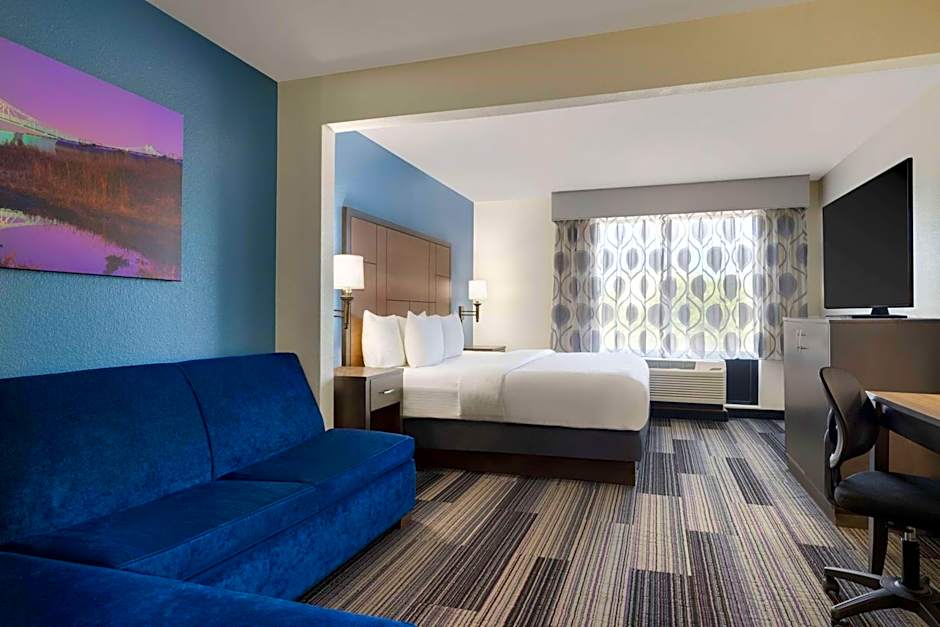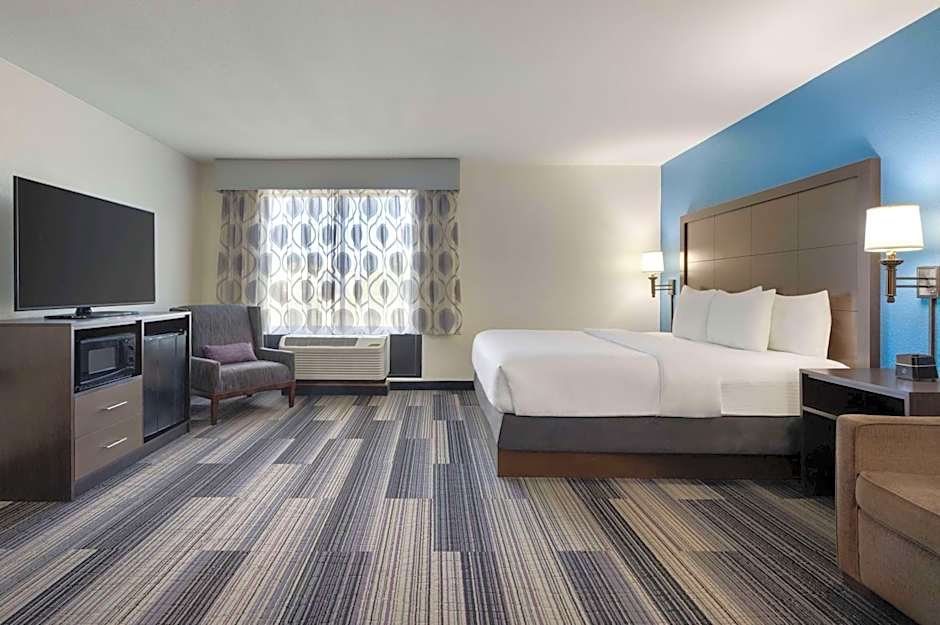 Featuring a 37-inch flat-screen TV, this room also offers a microwave and fridge.